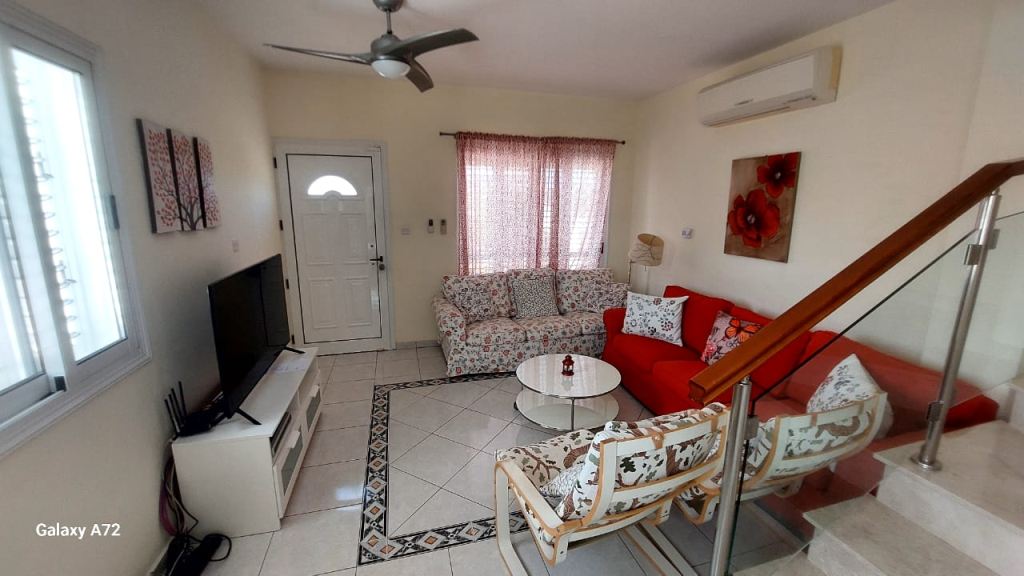 Long-Term Rental Townhouse Harry is a lovely property with 3 bedroom and 2 bathrooms set over 3 levels located in the Tomb of the Kings area of Paphos. Only a short drive to all the amenities of Paphos town and a 5 minute drive to Coral Bay. The townhouse has an open plan kitchen and living area with downstairs toilet. Townhouse Harry is fitted with modern furniture and has under floor heating. The property has a nice modern kitchen that is equipped with quality appliances consisting of a washing machine, dishwasher, hob/oven, fridge freezer etc. The master bedroom has an en-suite facilities. The 2nd bedroom and 3rd bedroom share the family bathroom. The Townhouse has full air conditioning and can be rented fully furnished. The Townhouse also has shutters and fly screens. There is a nice outside seating area in the garden and also a drive way and furnished roof garden. Available April 2026 |
