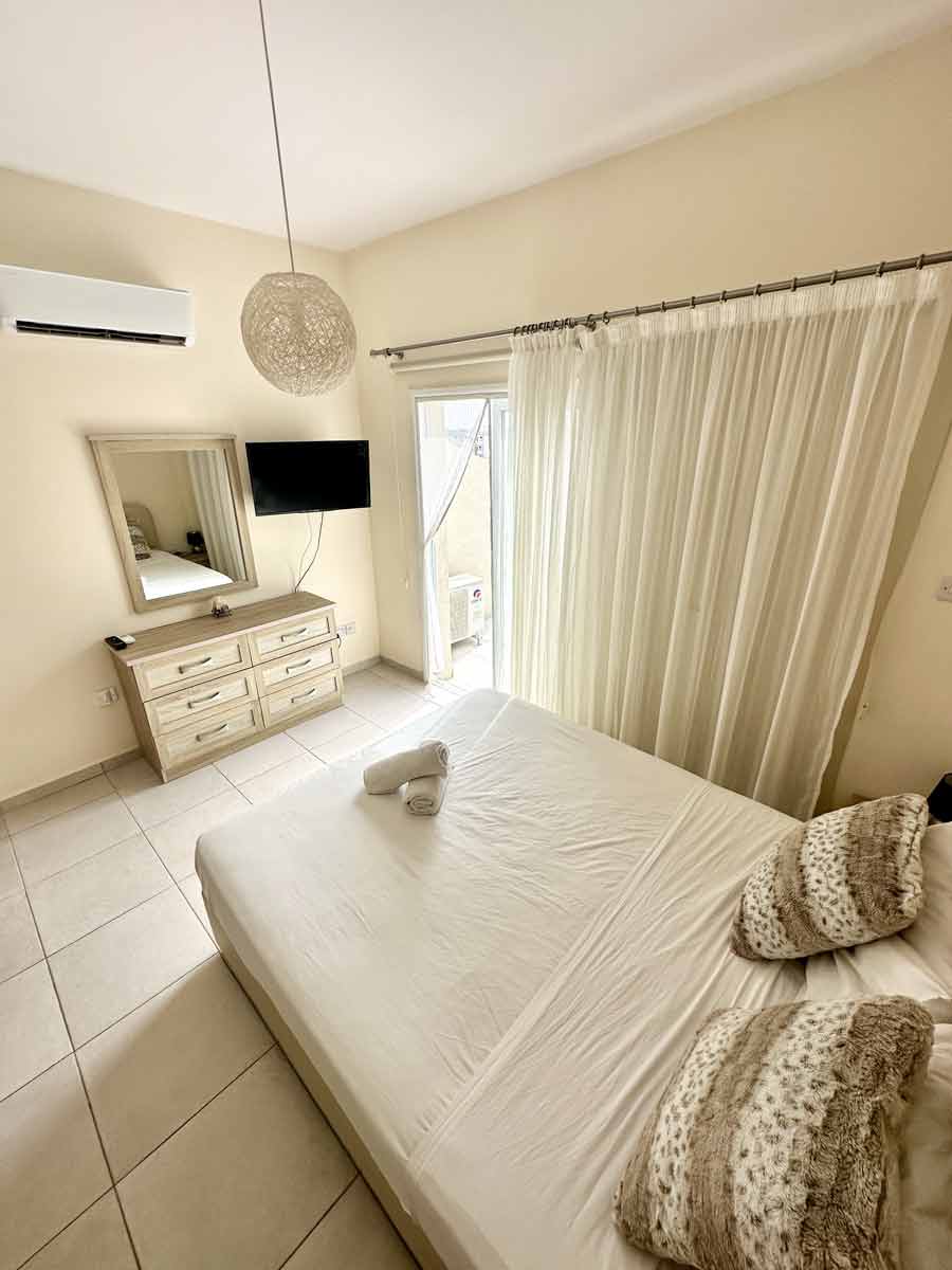 Long-Term Rental Townhouse Atlas is a lovely property with 2 bedroom and 1 bathrooms located in the sought-after Tombs of the Kings area with unobstructed sea and mountain views. The townhouse is just 400 meters from Venus Beach. Townhouse Atlas is available to rent fully furnished with modern furniture and luxurious finishes. Townhouse Atlas is an open plan design with living room dining room and kitchen. The property has a modern style fully equipped kitchen with quality appliances - hob/oven, fridge freezer and washing machine etc. The Townhouse has 2 spacious bedrooms. There is also a modern bathroom with high-quality fixtures and built-in wardrobes. Townhouse Atlas also includes private parking. Outside there is a private garden area. The townhouse is set within a beautifully landscaped complex with a mature garden and communal pool. The property is just minutes away from local amenities, the beach, and Paphos town centre. Available November 2025. |