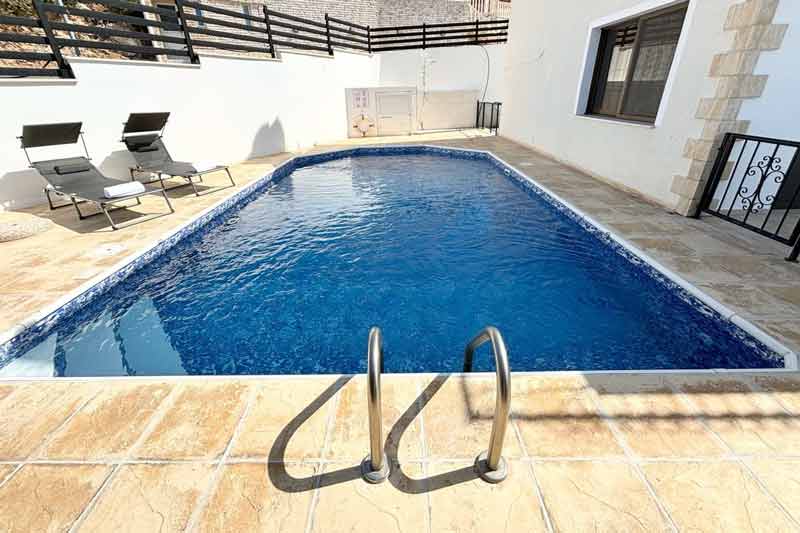 Long-Term Rental Villa Rose is a lovely fully furnished 3 bedroom 2 bathroom detached villa located in Peyia village Paphos. The villa has a furnished balcony and private swimming pool with spectacular panoramic views. The villa has been recently refurbished and also has a Photovoltaic system. The property has spacious living areas with a good sized living and dining room with direct access to a beautiful balcony. The lovely kitchen features all appliances comprising hob/oven, fridge/freezer, microwave and washing machine. Villa Rose has 3 large bedrooms. The master bedroom with an en-suite bathroom. The two other bedrooms use a family bathroom. The villa has full air conditioning. Villa Rose has internet, parking with private pool. The villa offers easy access to restaurants and shops in Peyia area and is a 10 minute drive to Coral Bay. The rental price includes all utility bills. Available September 2025. |